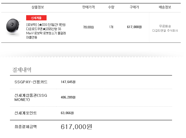 쇼핑하면서 쌓아둔 신세계포인트까지 전부 밀어 넣고, 9만원 할인기간이어서.